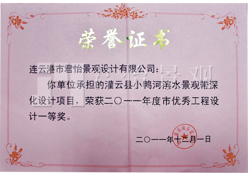 2011年獲獎證書