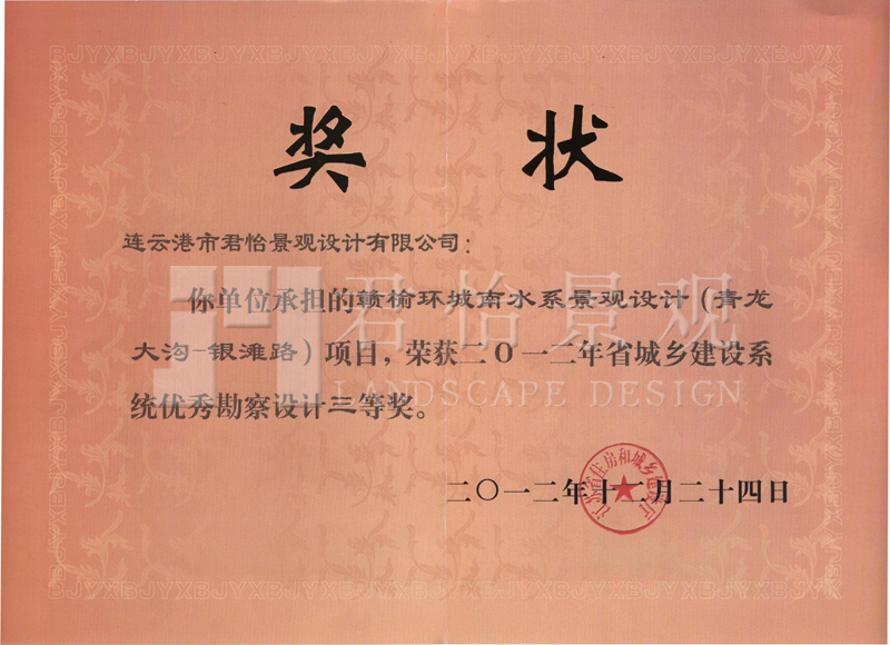 2012年獲獎(jiǎng)證書(shū)