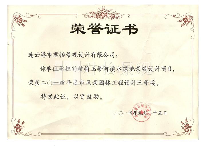 2014年獲獎證書