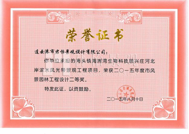 2015年獲獎(jiǎng)證書